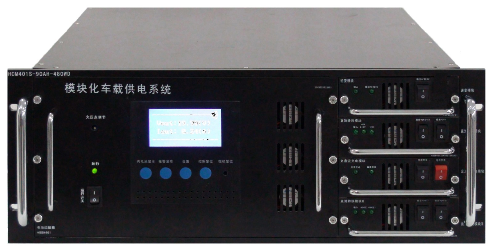 HCM401ST-1型车载电源是一款多功能型电源系统,该系统主要用于在车载环境下长时间向电子设备提供稳定的5VDC、12VDC、24VDC和220VAC工作电源,可由用户任意选择,每路输出设独立开关进行控制,内设微机控制,使系统更安全、可靠。